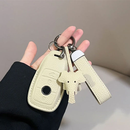 ブラウンとグレーから好みの色を選べるレザー素材のスマートキーケースです。