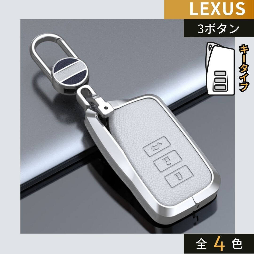 アルミニウム合金のスマートキーケースです。ボタン部分はレザー素材が施されています。