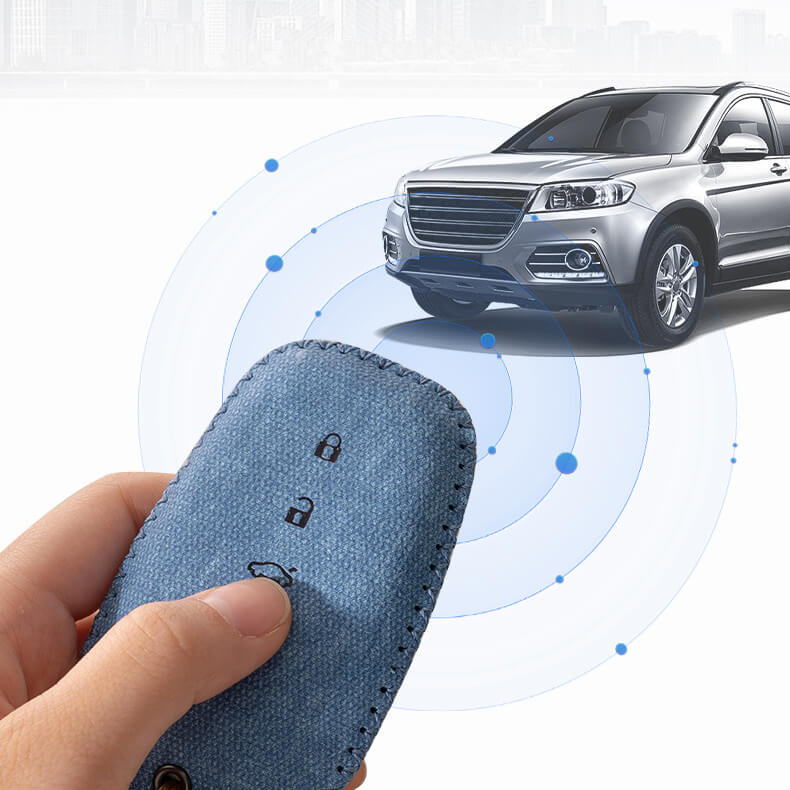 車のキーをしっかり保護しながら、スマートなデザインで持つ人の印象をアップ。ボタン部分にはアイコンデザインを施し、ケースを付けたまま操作が可能です。