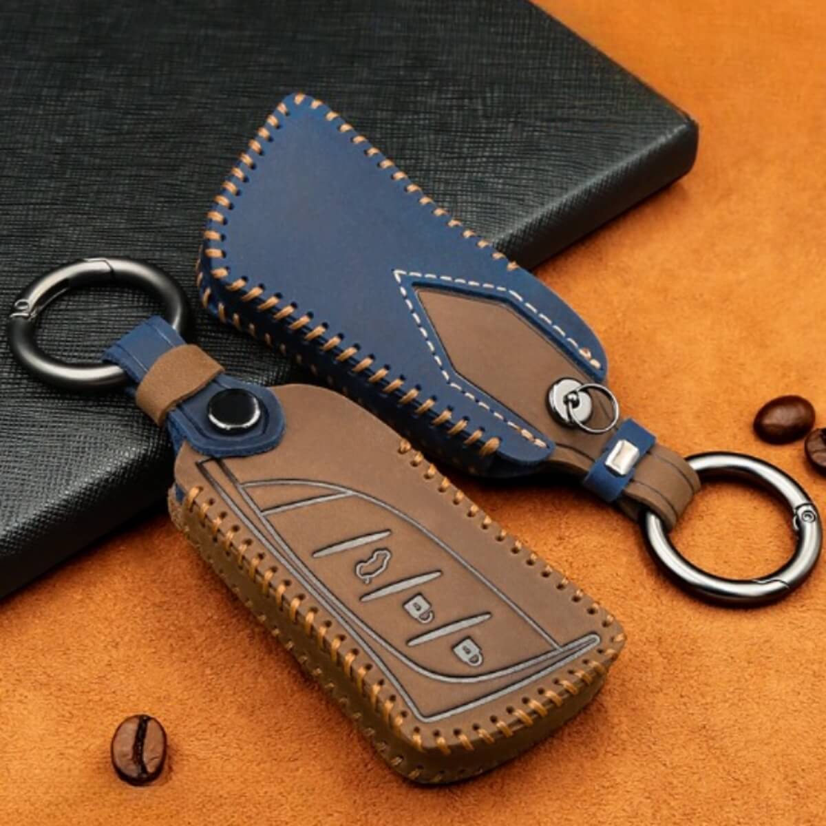 柔らかく手に馴染むレザー素材がキー全体を包み込み、キズ・汚れ・衝撃から大切なキーをしっかり保護します。LX、RX、NXなどLEXUS車のスマートキーにフィットし、対応車種も多数。